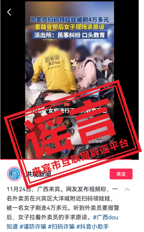 外賣員掃碼領(lǐng)娃娃被刷四萬塊?辟謠!