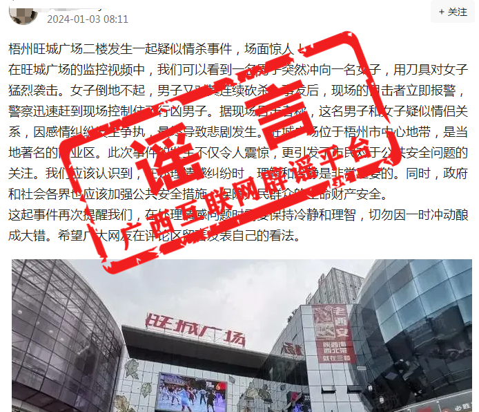 來(lái)源: 廣西互聯(lián)網(wǎng)辟謠平臺(tái)綜合梧州市融勝商業(yè)管理有限公司發(fā)布時(shí)間: 2024-01-03 10:57責(zé)任編輯: 田沁園