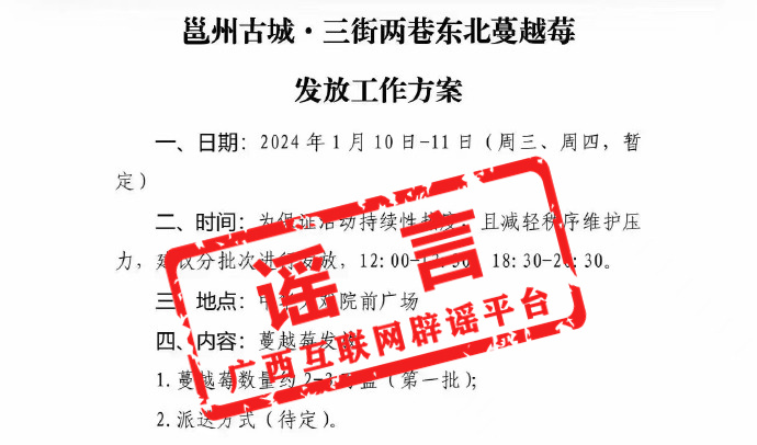 經(jīng)廣西互聯(lián)網(wǎng)辟謠平臺(tái)核實(shí),該工作方案為威寧集團(tuán)下屬三街兩巷管理子集團(tuán)的第一稿方案,該方案中的時(shí)間、地點(diǎn)等內(nèi)容均有調(diào)整,并不是最終的發(fā)放方案。