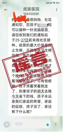 近日,有網(wǎng)民表示,收到了署名為民族醫(yī)院的有關(guān)接種流腦疫苗的通知,引發(fā)了廣大家長的關(guān)注和警覺。