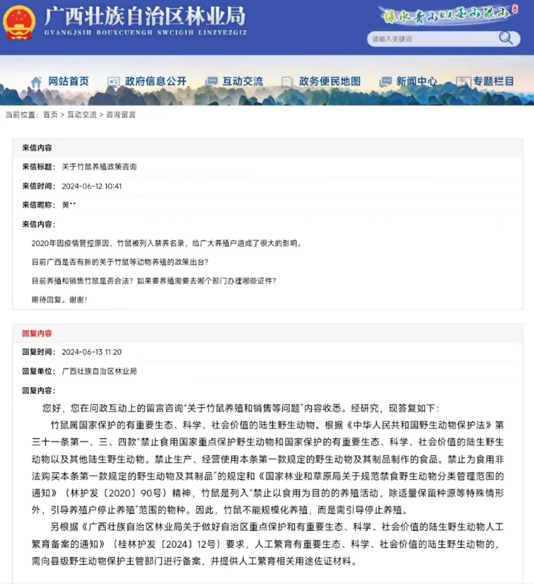 近日,有網(wǎng)民在社交平臺(tái)發(fā)布消息稱,自治區(qū)林業(yè)局針對(duì)竹鼠養(yǎng)殖政策問(wèn)題做出了回應(yīng),表示支持發(fā)展竹鼠產(chǎn)業(yè)。引發(fā)網(wǎng)民關(guān)注討論。