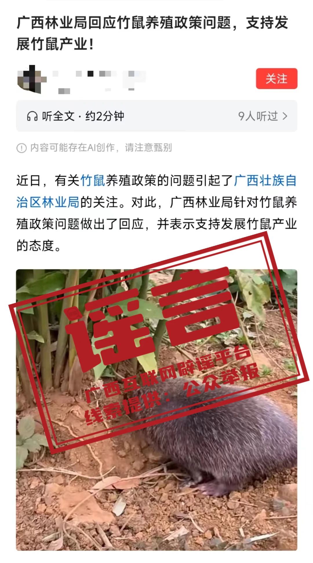 網(wǎng)傳文章稱,為支持竹鼠養(yǎng)殖產(chǎn)業(yè)的發(fā)展自治區(qū)林業(yè)局發(fā)布三項(xiàng)措施: